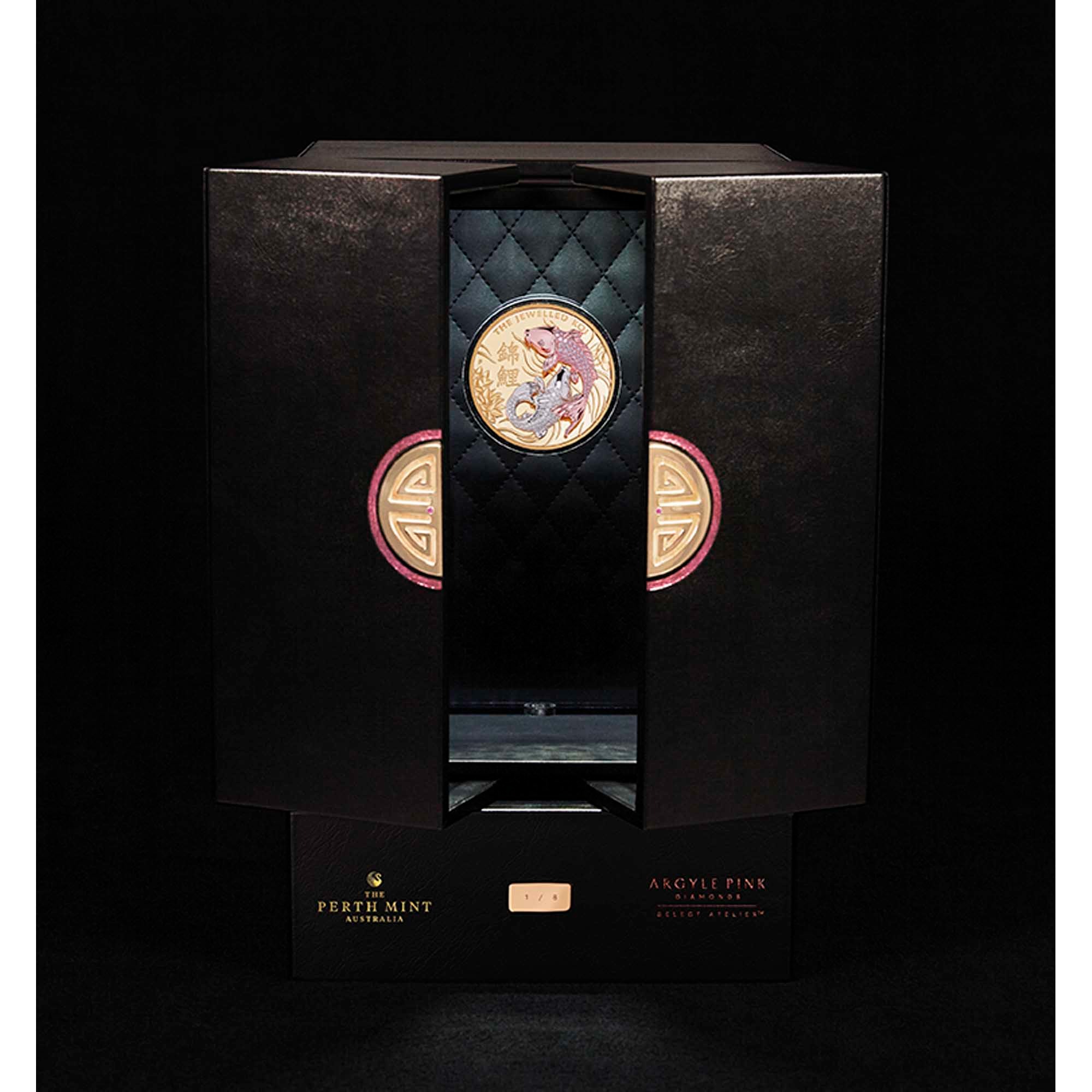 A scintillating fusion of pure gold and fine diamonds, including rare pinks from Western Australia’s famous Argyle Mine, this special release is an outstanding artistic creation that radiates mesmerising style and sophistication for high end collectors of exclusive numismatic treasures.