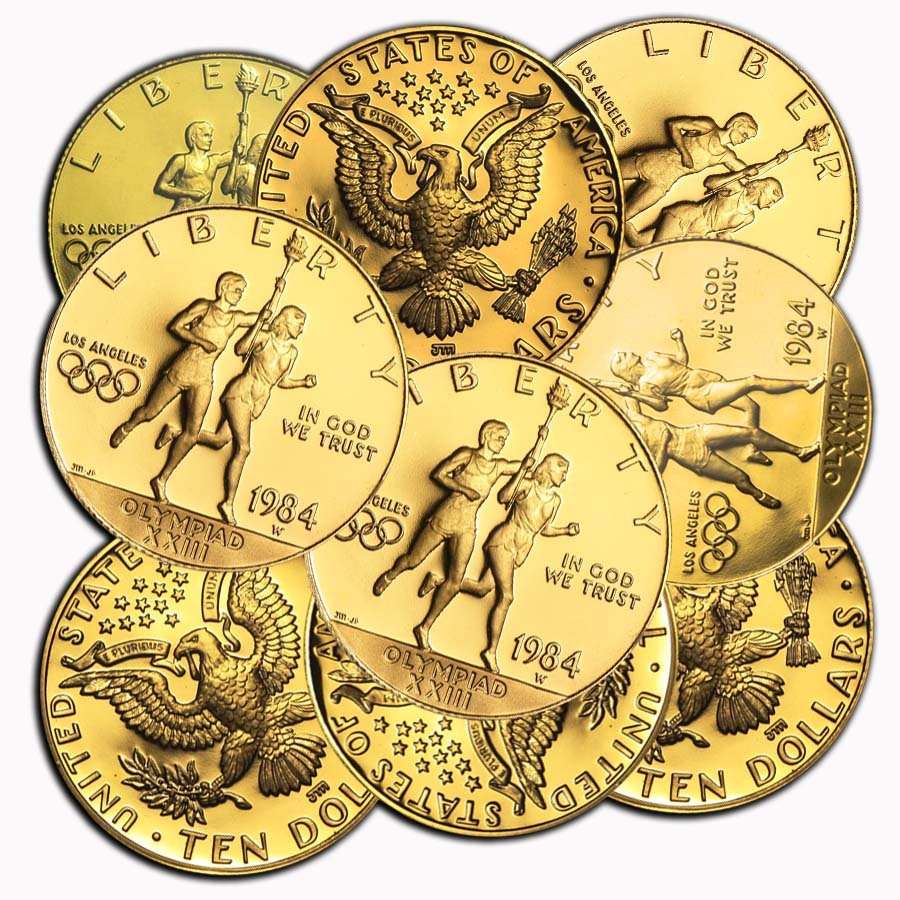 The first $10 US Mint Commemorative Gold Coins issued by the United States Mint came in 1984 to celebrate the 1984 Summer Olympic Games hosted by the city of Los Angeles, California. The United States issues $10 (USD) coinage that is considered legal tender, but the coins are not intended for circulation use.