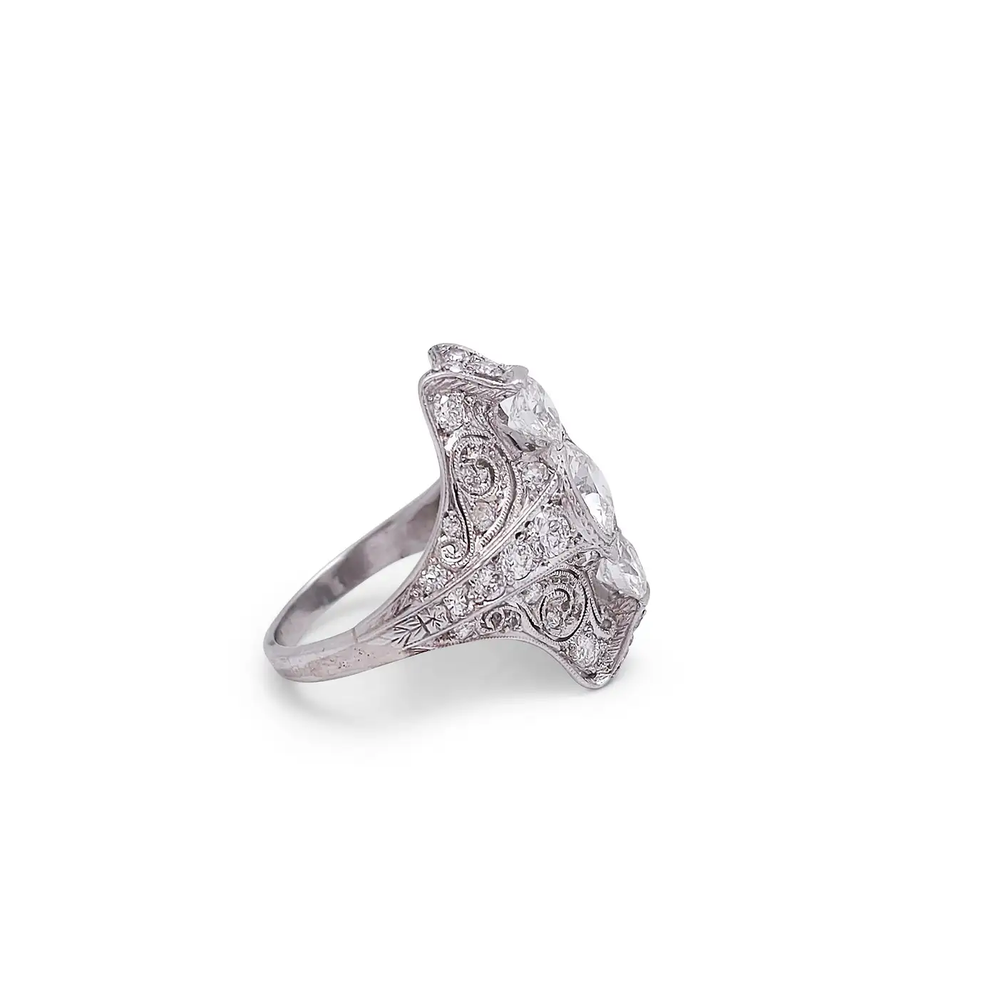 Metal: Platinum Gemstone: Diamond Condition: Excellent Wear: Consistent with age and use Weight: 6.4 grammes Ring Size: 5.75 Date of Manufacture: 1930s Period: Art Deco