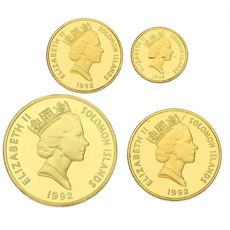 1992 Solomon Islands 50th Anniversary Battle of Guadalcanal 4 Coin Gold Proof Set Boxed