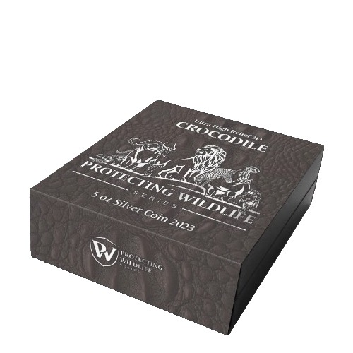 The Protecting Wildlife series uses beautiful bullion collectibles to promote awareness of the need to protect and conserve some of the world’s most iconic species of wildlife. Four species of crocodile are still endangered today in China, Brazil, Indonesia and India, and the first issue in the series provides a vivid celebration of the ancient and majestic reptilian predators in full five ounces of pure silver, with an antiqued finish that beautifully accentuates the collectible’s ultra high-relief engravings.