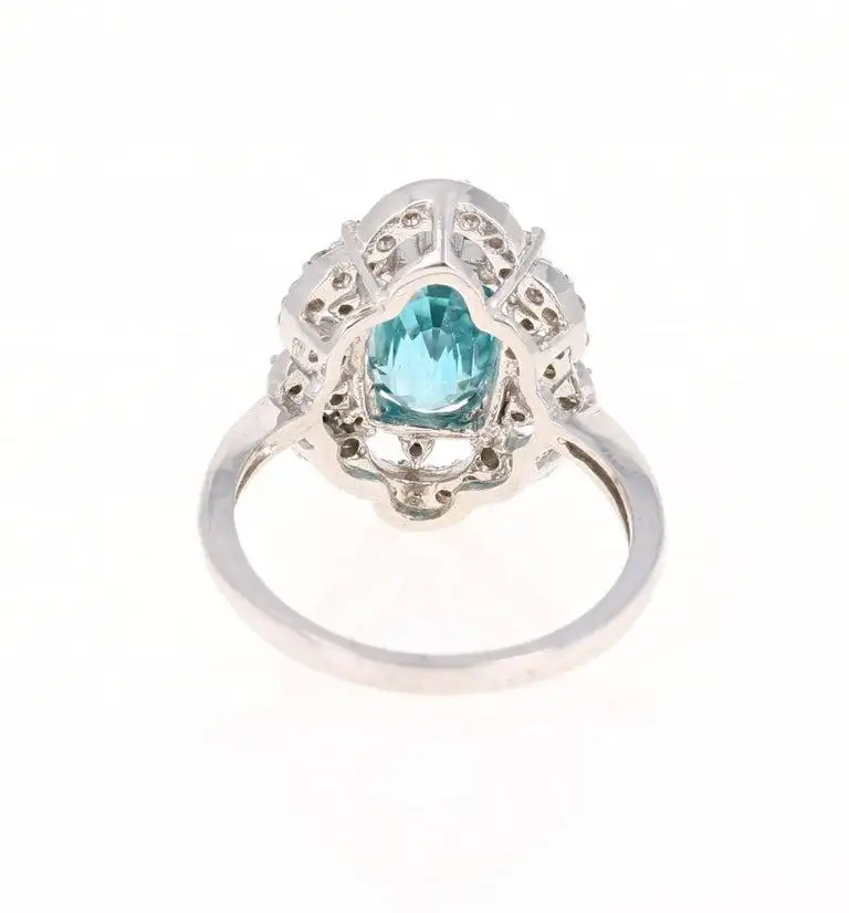 6.05 Carat Blue Zircon Diamond 14 Karat White Gold Ring