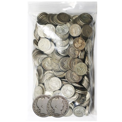 All of the 90% Silver Barber Half Dollars in this listing have 90% silver content and 10% copper for durability in circulation. The coins available here are in average circulated condition with common signs of wear and tear as a result of use in circulation. There are a total of 250 US half dollars in this listing for a total face value of $500 (USD). You should expect to find a variety of different date marks in the bag of quarters you receive.