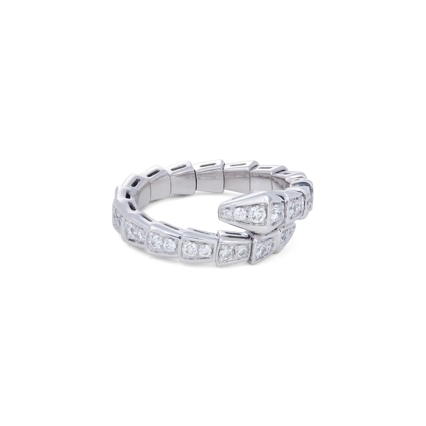 Brand: Bvlgari Collection: Serpenti Metal: 18k White Gold Gemstone: Diamond Condition: Excellent Wear: Consistent with age and use Weight: 7 grammes Ring Size: L (will fit sizes 7- 7.75) Date of Manufacture: 2020s Period: Contemporary Original Box: No (pouch) Original Papers: Yes (service papers)