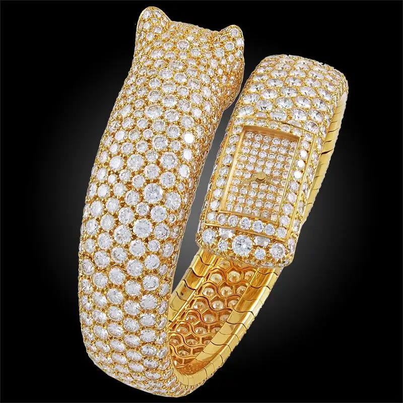 Cartier Diamond Panther Cuff Bangle Watch