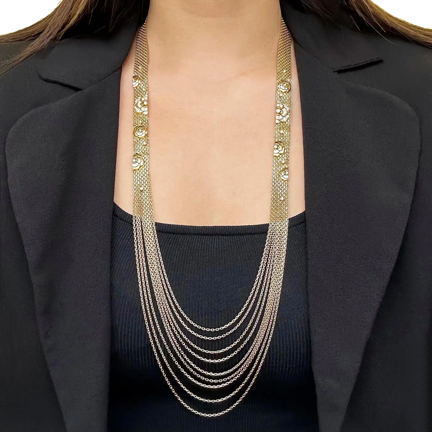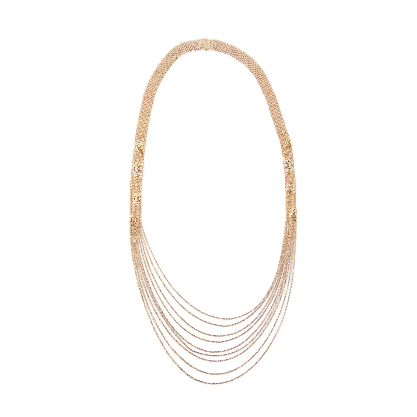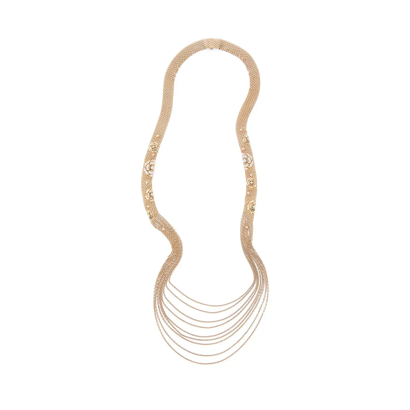Chanel Gold and Diamond Camellia Multi Strand Flapper Necklace