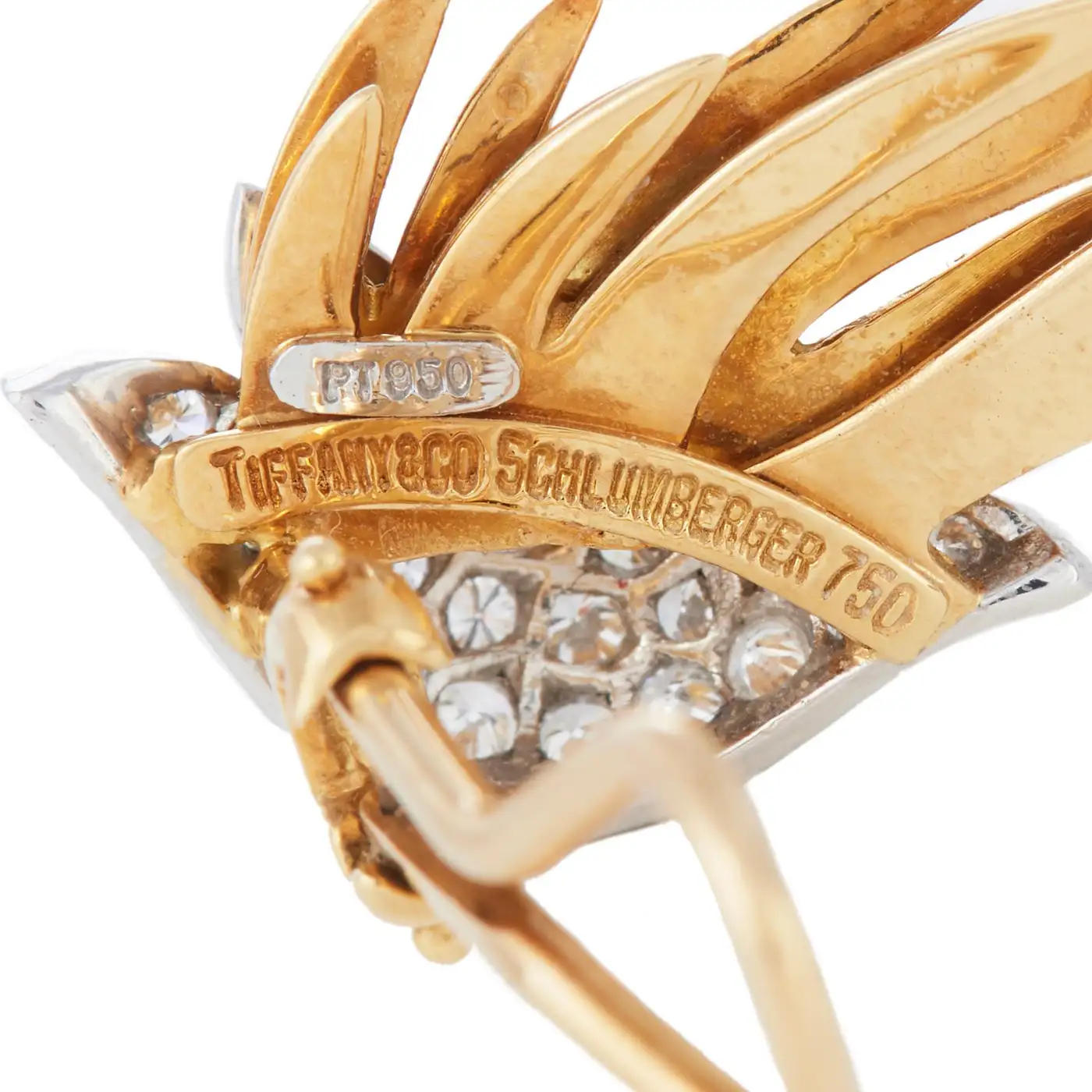 Brand: Jean Schlumberger for Tiffany & Co. Collection: Paris Flame Metal: 18k Yellow Gold, Platinum Gemstone: Diamonds Condition: Excellent Wear: Consistent with age and use Weight: 16.2 grammes Measurements: 39 x 15.4 mm Date of Manufacture: 1990s Period: Late 20th Century.