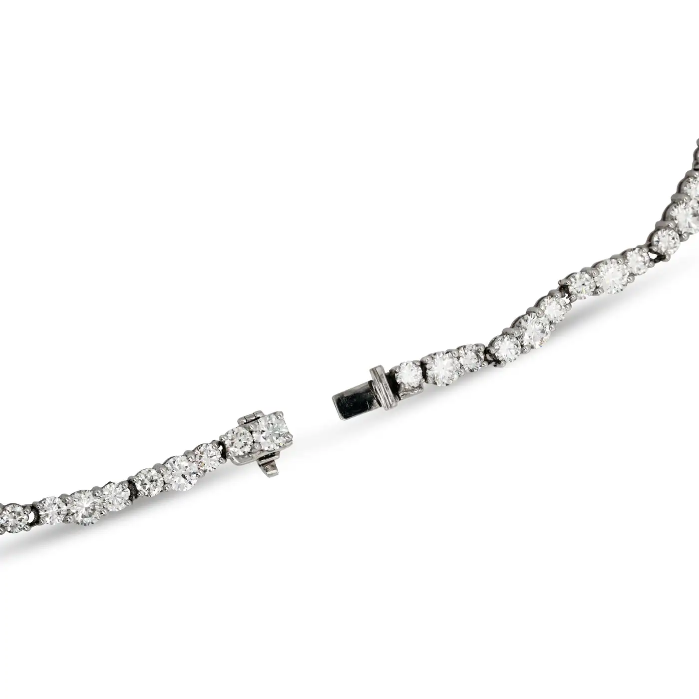 Total diamond weight 32.51 carat on necklace The true beauty in the necklace is the symmetry on both sides to have an even sized, matching set of diamonds on either side. Necklace is 16 inches in length. The Diamond drop is 1.18 inches. Crafted entirely in Platinum