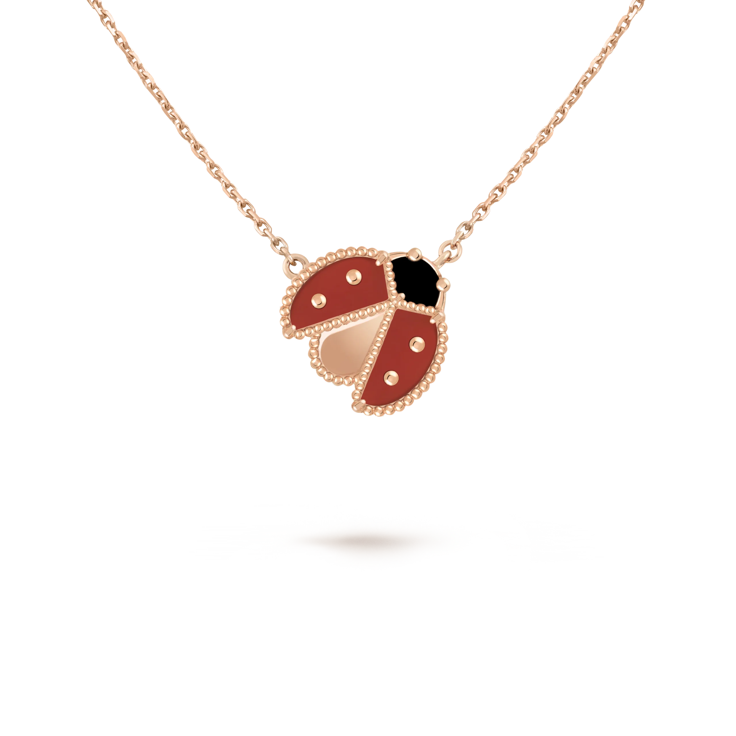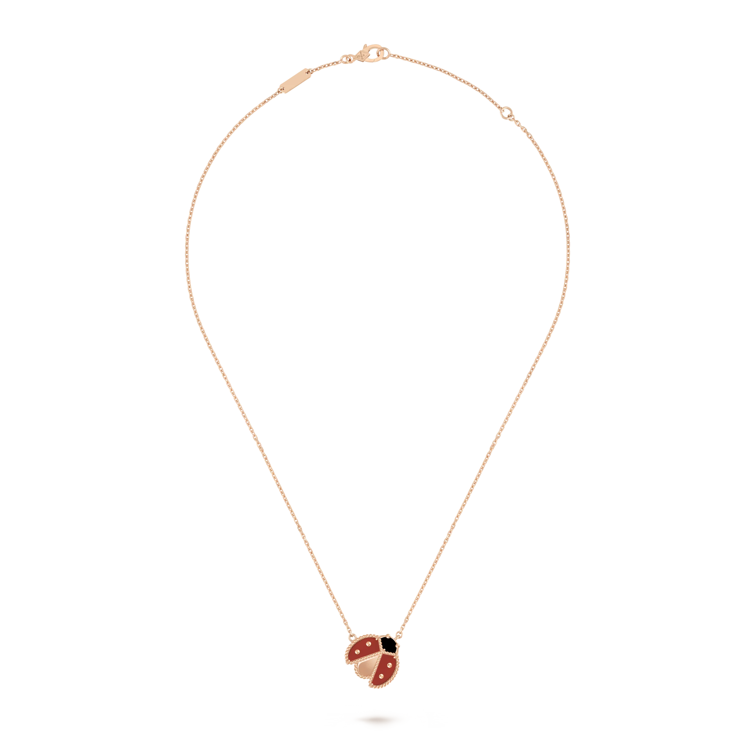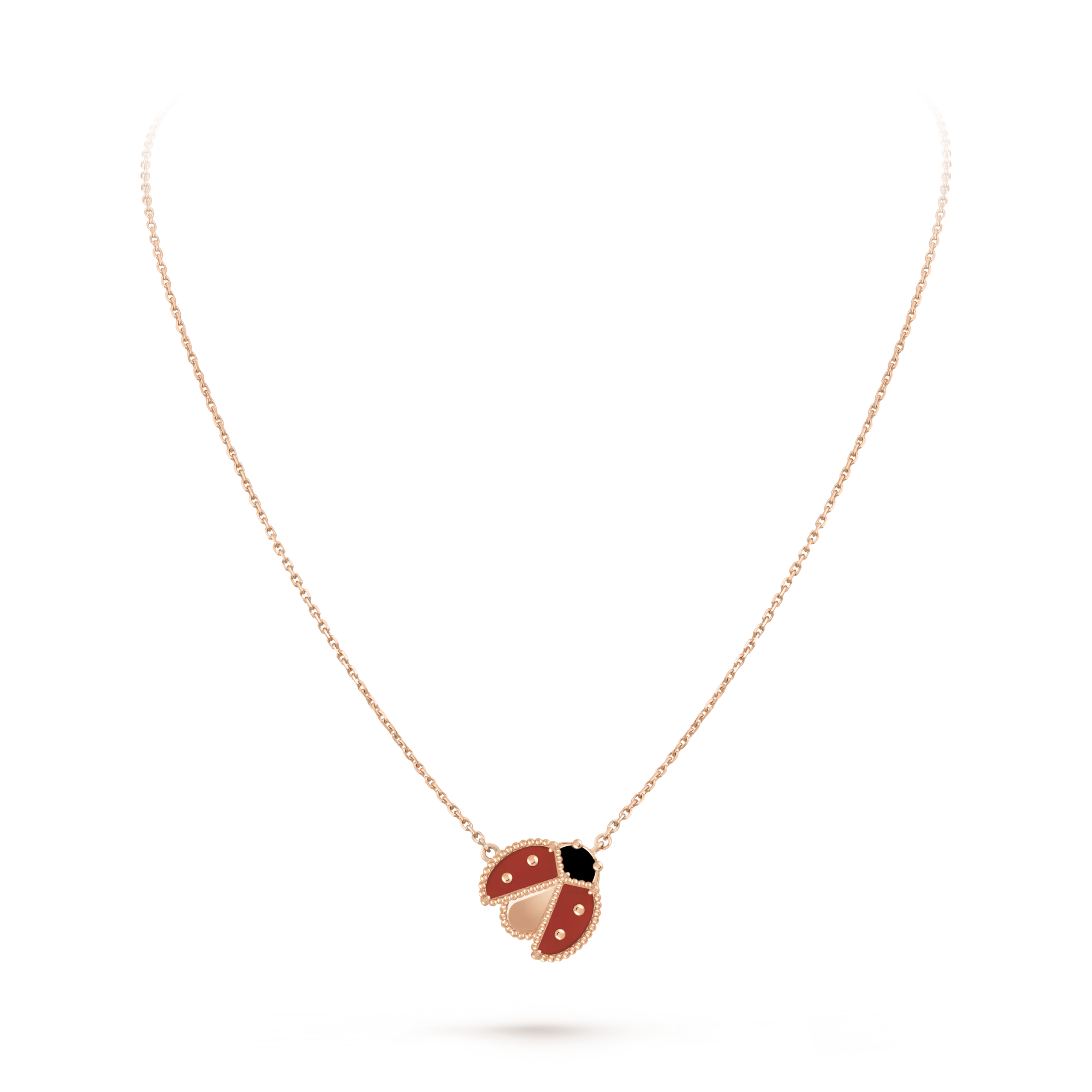 Lucky Spring pendant, open wings ladybug, 18K rose gold, carnelian, onyx.