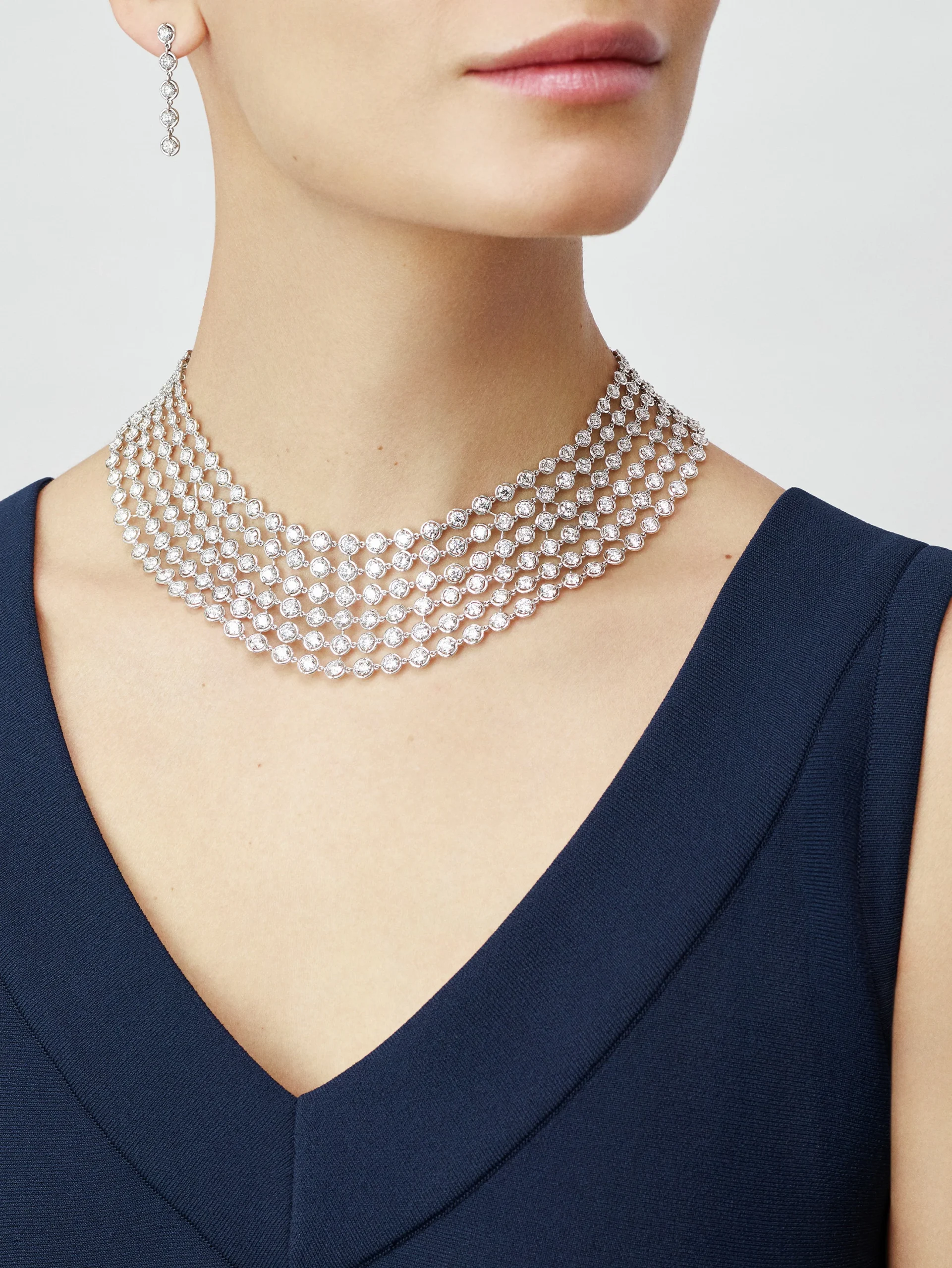 Palmyre necklace. Rhodium plated 18K white gold, diamonds.