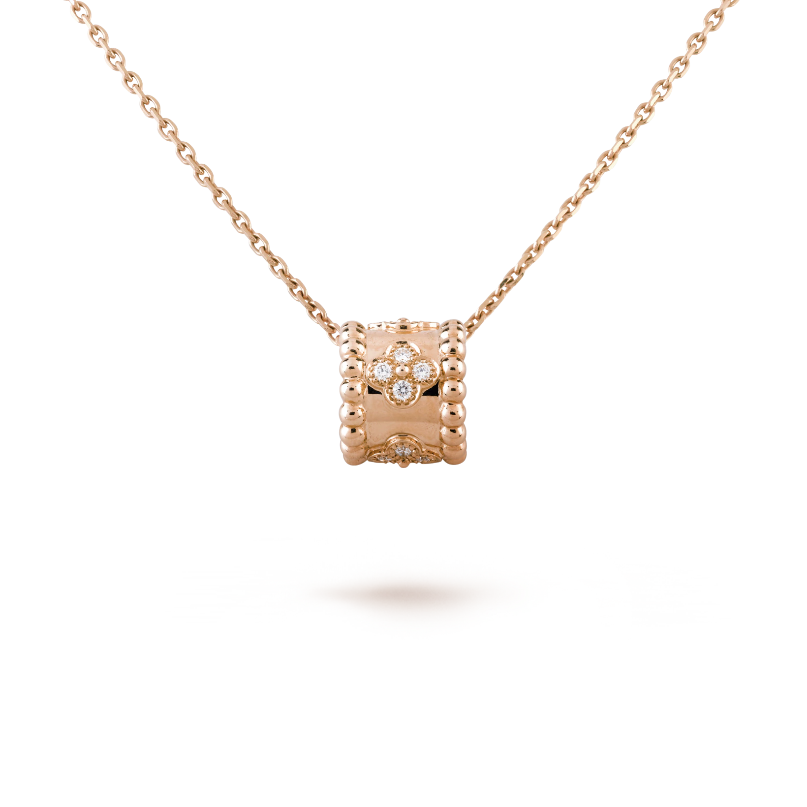 Perlée clovers pendant, 18K rose gold, round diamonds; diamond quality DEF, IF to VVS.
