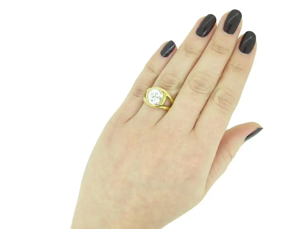Vintage solitaire cushion shape old mine diamond ring. Set with one central cushion shape old mine diamond, M colour, VS2 clarity, with an approximate weight of 3.01 carats, in an open back white gold rubover collet setting, with open backholing, flanked by split shoulders which wrap around the centre stone in opposing directions, and on a double yellow gold round shank. Marked 18 carat yellow and white gold, French, circa 1950, accompanied by Gemological Certification Services report #5774-262.